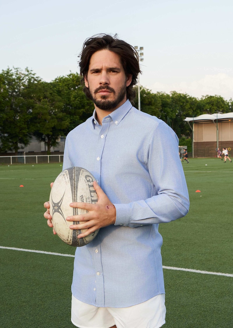 Cette chemise Oxford blanche se distingue par son tissage retors texturé et grainé, inspiré de l'univers sportif du rugby. Elle est idéale pour adopter un look smart-casual plein de caractère. ...