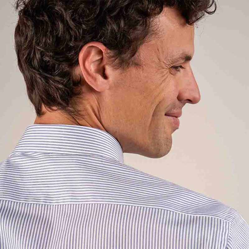 Jeder Stoff wird von unseren Teams sorgfältig unter realen Bedingungen an einem Hemd getestet . Wir bewerten seinen Sitz, sein Einlaufen, seinen Tragekomfort, seine Pflegeleichtigkeit und seine Haltbarkeit nach mehreren Waschgängen. Es kommt vor, dass ein Stoff zwar elegant aussieht, sich aber letztlich beim Tragen als empfindlich erweist: In diesem Fall sortieren wir ihn aus.